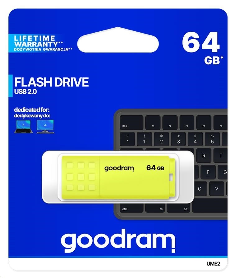 GOODRAM Flash Disk 64GB UME2, USB 2.0, žlutá