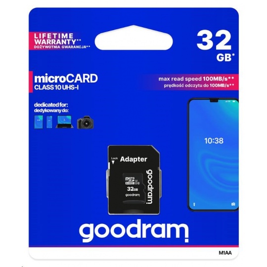 GOODRAM MicroSDHC karta 32GB M1AA, UHS-I Class 10, U1 + adaptér