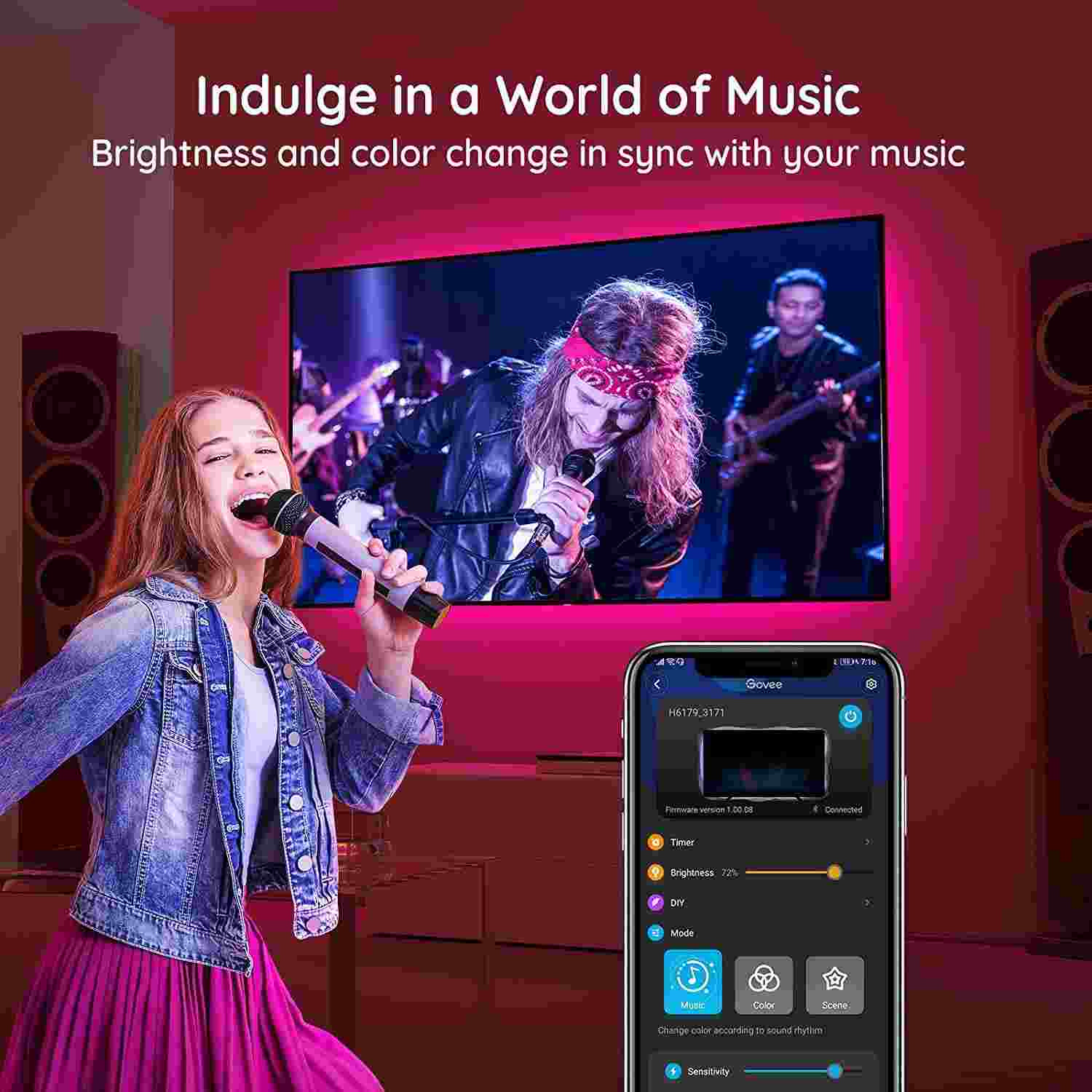 Díky vestavěnému mikrofonu se světelné pruhy hladce synchronizují s vaší hudbou nebo atmosférickými zvuky vydávanými z vašeho TV/PC při sledování filmů nebo hraní her.