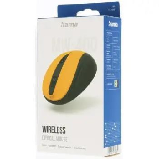 Hama bezdrátová optická myš MW-400 V2, ergonomická, žlutá/černá