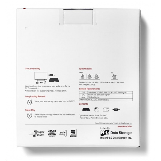 HITACHI LG - externí mechanika DVD-W/CD-RW/DVD±R/±RW/RAM GP57EB40, Slim, Black, box+SW
