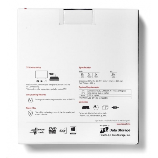HITACHI LG - externí mechanika DVD-W/CD-RW/DVD±R/±RW/RAM GP57EW40, Slim, White, box+SW