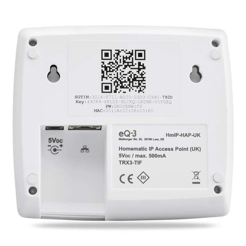 Instalace Centrální jednotky (HmIP-HAP) je velice jednoduchá. Jednotku připojíte do sítě 230 V pomocí dodávaného napájecího zdroje, následně ji propojíte ethernetovým kabelem (RJ-45 – součást balení) ke standardnímu routeru připojeného do internetu, čímž dojde k navázání spojení s cloudem. Nainstalujete aplikaci Homematic IP (není třeba vytvářet účet) a jednoduše naspárujete Centrální jednotku (HmIP-HAP) pomocí QR kódu na zadní straně zařízení. Obdobným způsobem pak můžete přidávat do systému, prostřednictvím mobilní aplikace Homematic IP, další nová zařízení, postačí načíst QR kód v několika jednoduchých krocích a vše je hotovo.