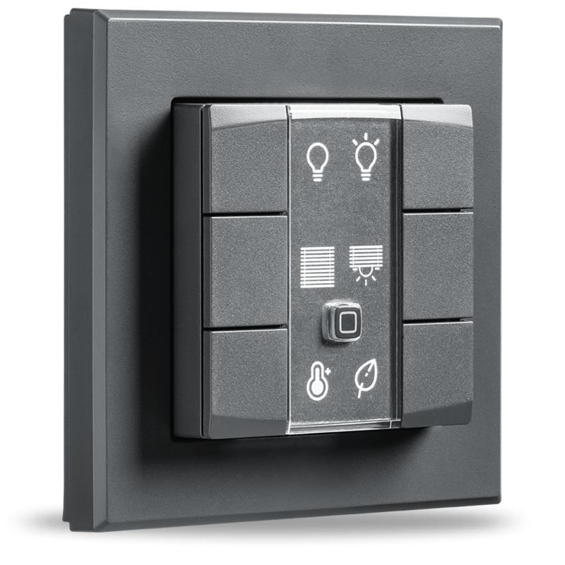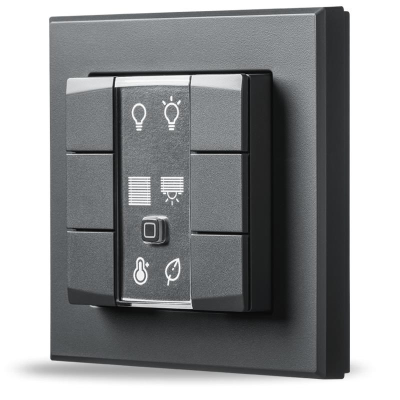 Programovatelný bezdrátový Nástěnný dálkový ovladač v antracitové barvě (HmIP-WRC6-A) je součástí systému chytré domácnosti Homematic IP.