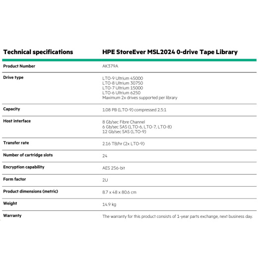 HPE StoreEver MSL2024 0-drive Tape Library.