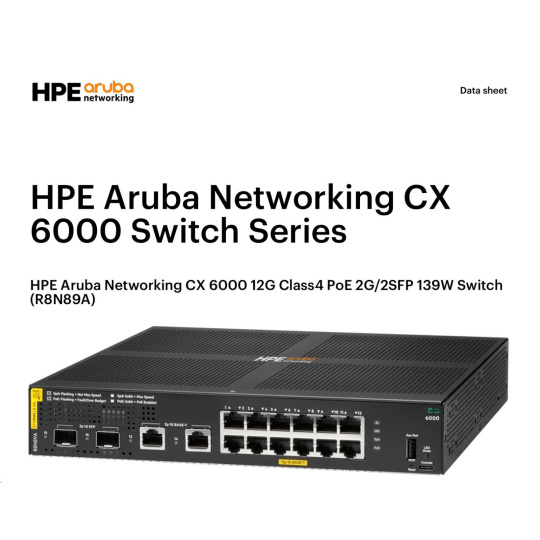 HPE Aruba Networking CX 6000 12G Class4 PoE 2G/2SFP 139W Switch.
