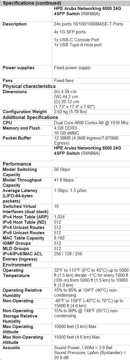 HPE Aruba Networking 6000 Switch Specifications