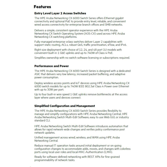 HPE Aruba Networking CX 6000 48G Class4 PoE