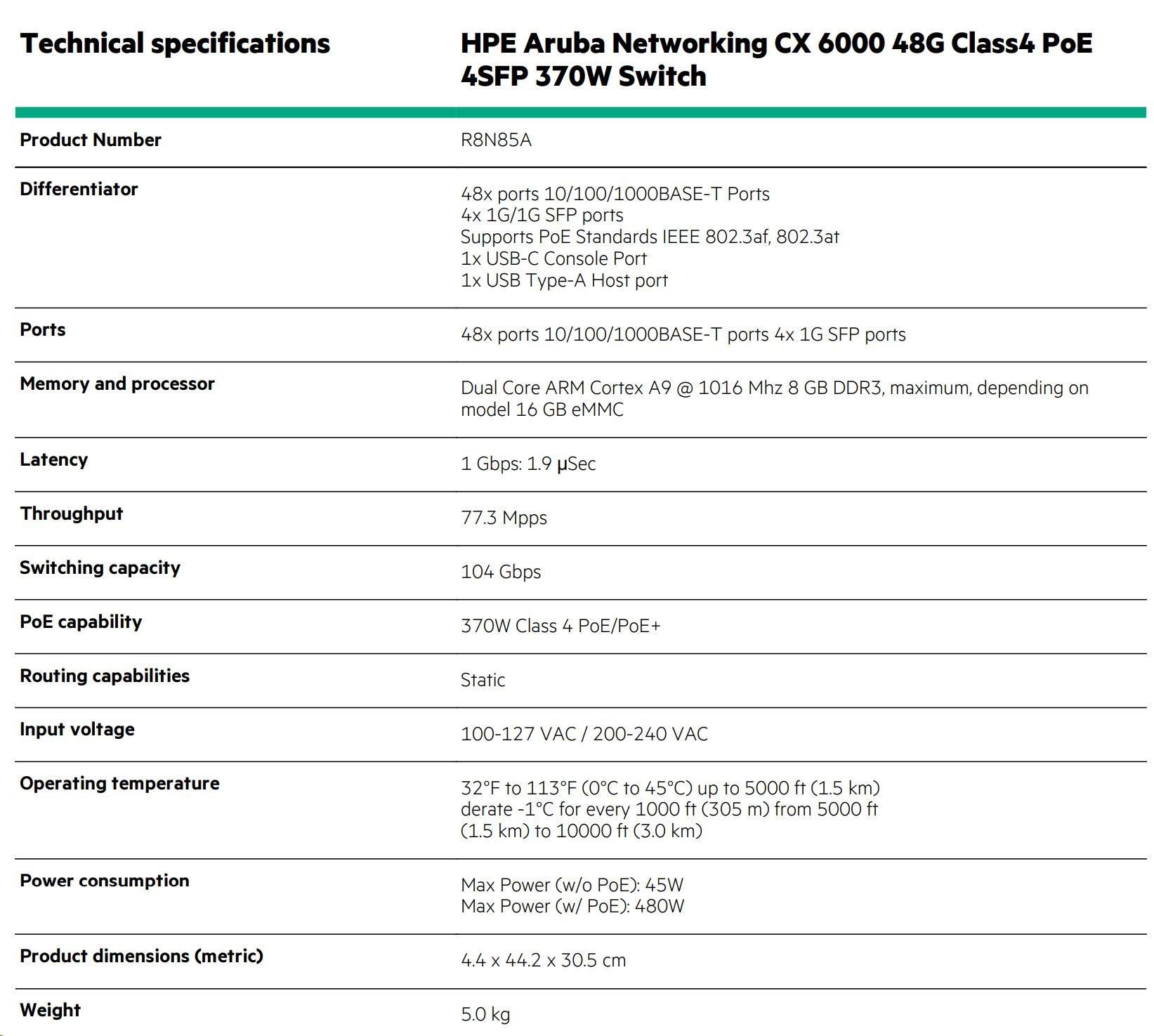 | Aruba 6000 48G 4SFP Switch (R8N86A) | |