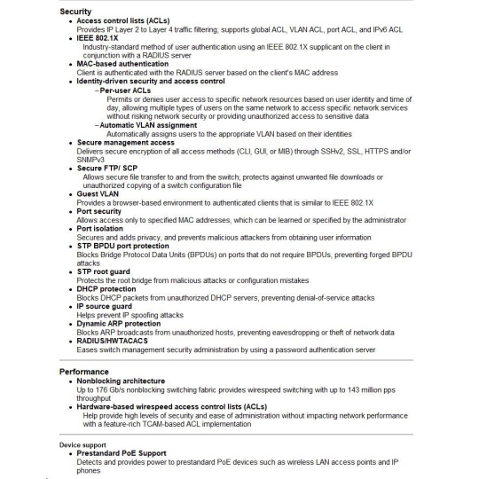 • Powerful QoS feature Supports the following congestion actions: strict priority (SP) queuing, weighted round robin (WRR), and SP+WRR