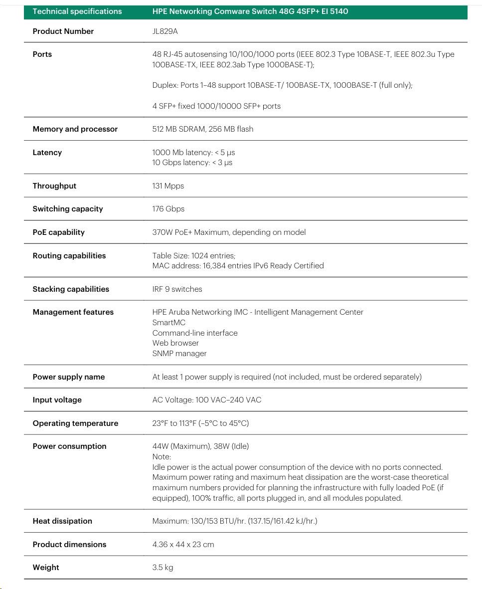 | 2, 3, 4 | HPE Networking Comware Switch 48G 4SFP+ EI 5140 | JL829A |
