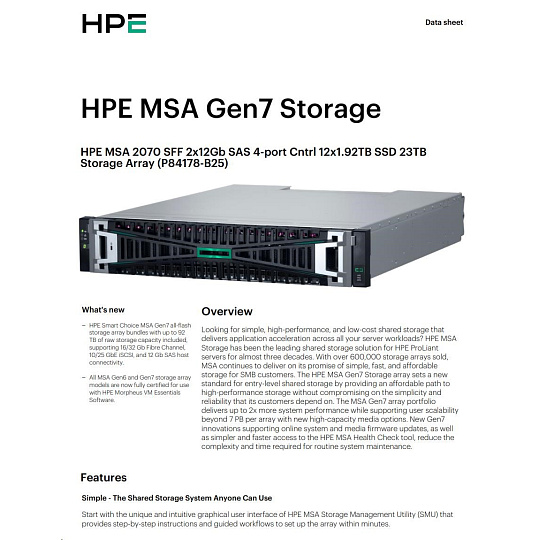 HPE MSA 2070 SFF 2x12Gb SAS 4p Array.