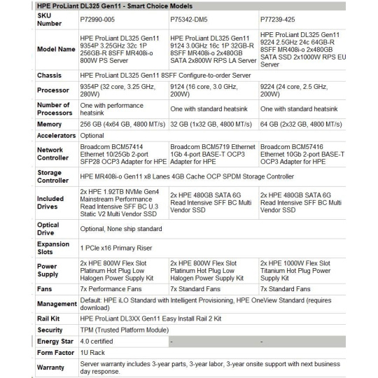 | Chassis | HPE ProLiant DL325 Gen11 8SFF Configure-to-order Server |