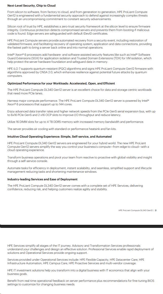 HPE PL DL340 Gen12 6515P (2.4/16C) 1x64G (P69728) NS204(2x480) MR416i-o 8SFF 2x1000W 10GbE NBD333 Smart Choice.