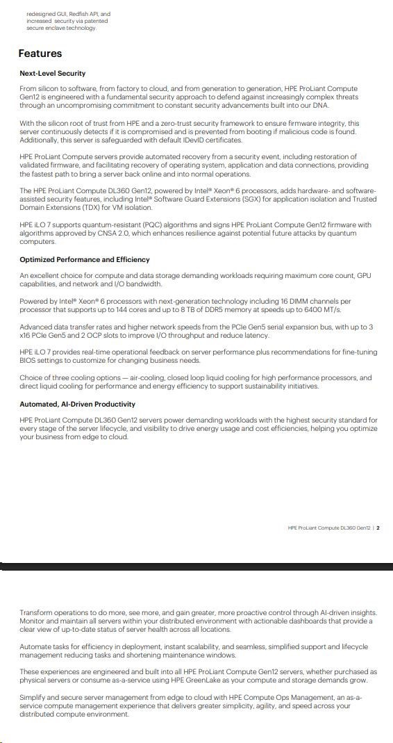 - HPE iLO 7 with enhanced security and Redfish API support