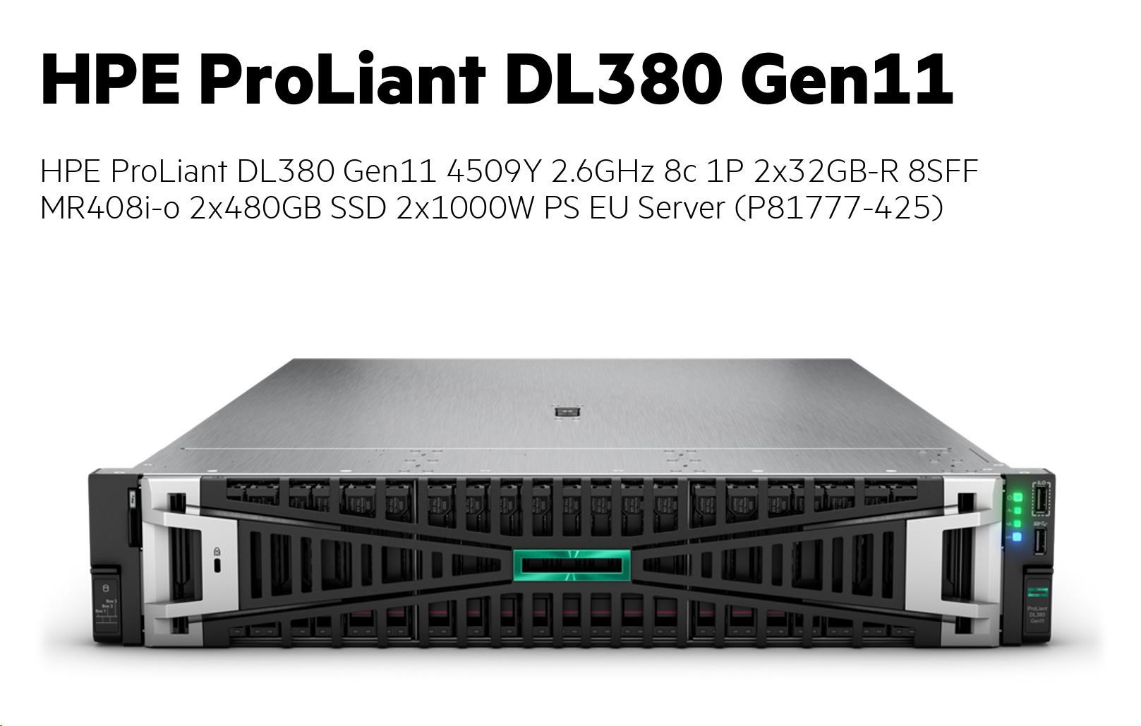 HPE PL DL380g11 4509Y (2.6/8C) 2x32G (p64706) 8SFF MR408i-o 2x480G 2x1000W 4x1Gb NBD333 Smart Choice.