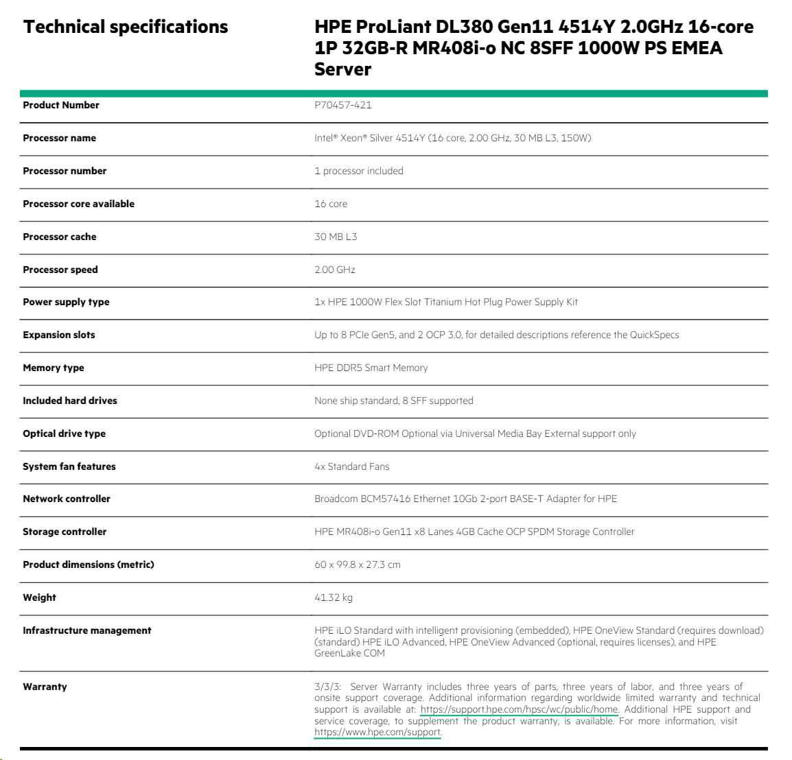 HPE ProLiant DL380 Gen11 - Technical Specifications