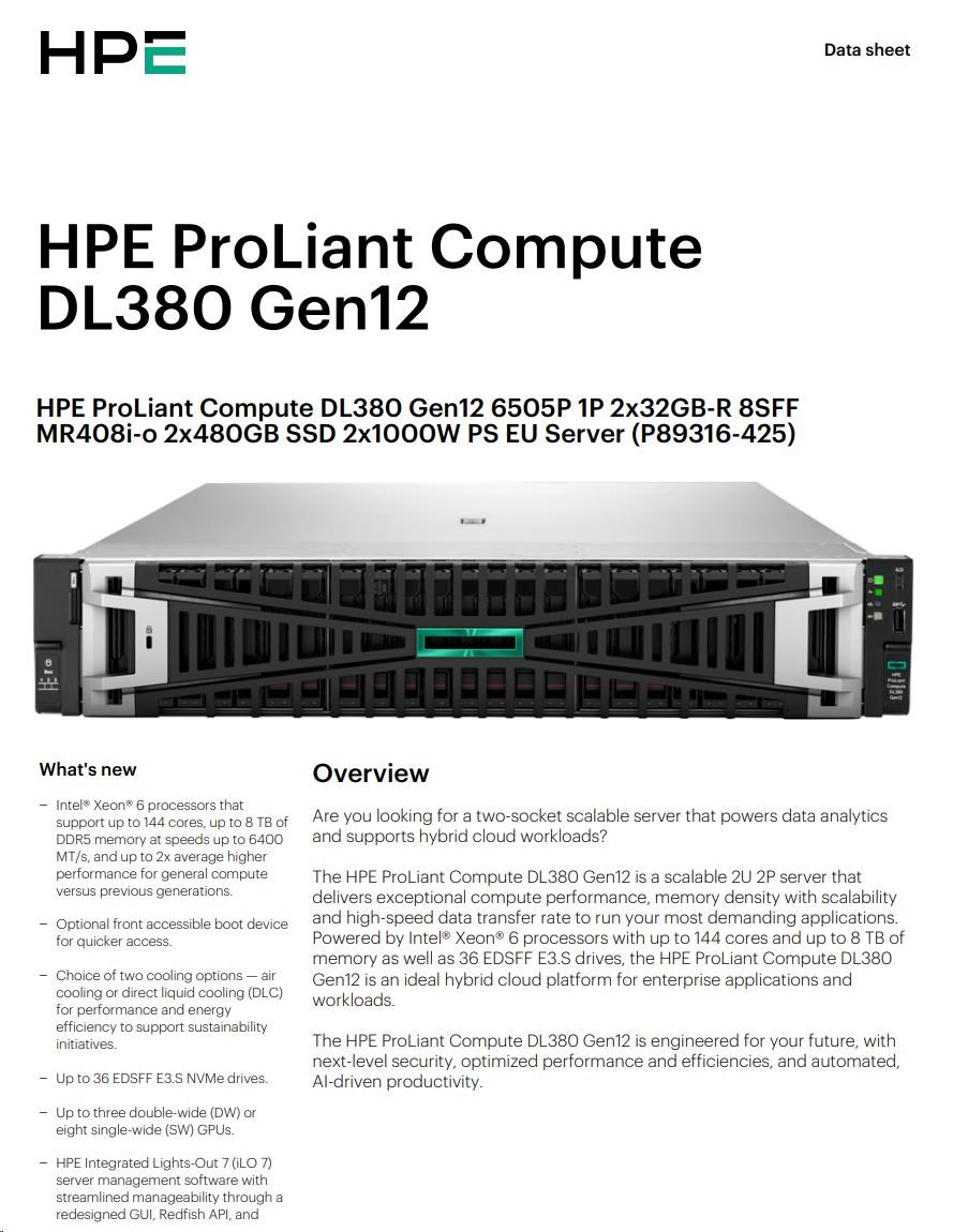 HPE PL DL380g12 6505P (2.2/12C) 2x32G (P69727) 2x8TB MR416i-o 2x1000W 10GbE NBD333 Smart Choice.