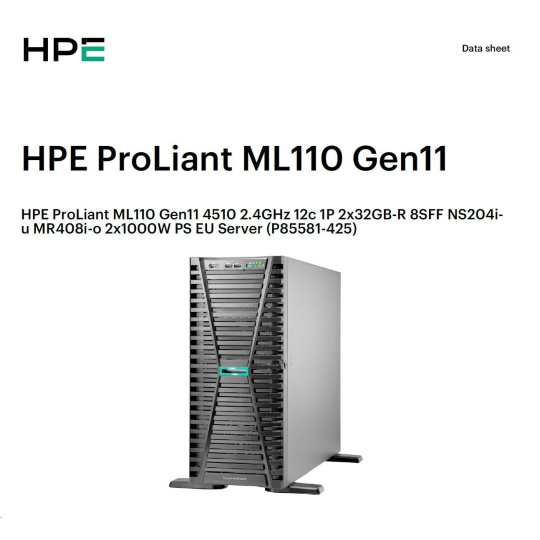 HPE PL ML110g11 4510 (2.4G/12C) NS204(2x480) 2x32G (P64706) MR408i-o 2x1000W 8SFF 2x1G NBD333 Smart Choice.