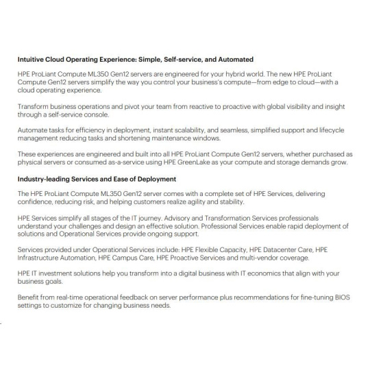 HPE PL ML350g12 6505P (2.2/12C) 1x64G (P69728) 2x960G MR408i-o 8SFF 2x1000W 1GbE NBD333 Smart Choice