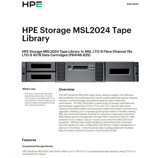 HPE Storage MSL2024 Tape Library 1x MSL LTO-9 Fibre Channel 15x LTO-9 45TB Data Cartridges