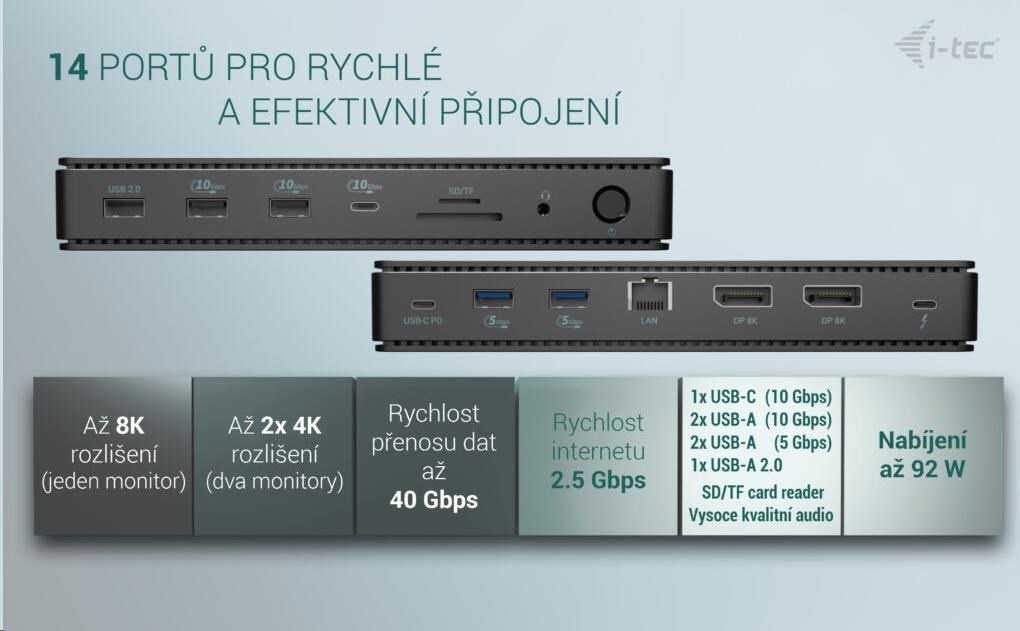 Výjimečný výkon, ultrarychlý přenos dat a podpora rozlišení až 8K. Jedna z nejvýkonnějších dokovacích stanic na trhu!