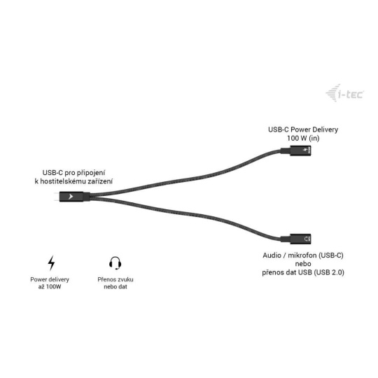 i-tec USB-C Cable Splitter Audio/Data + Power Delivery 100W