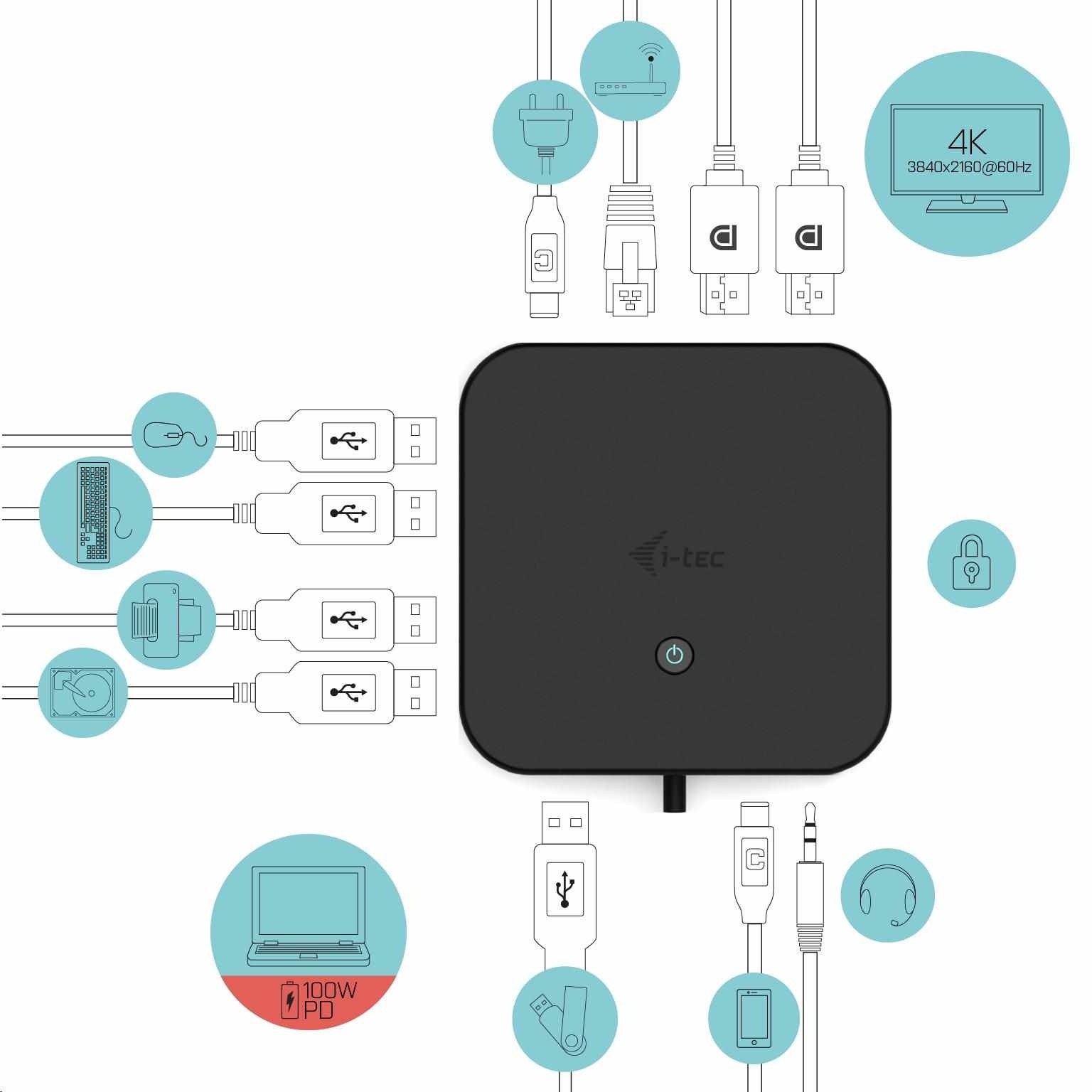i-tec USB-C Dual Display Docking Station, Power Delivery 100 W