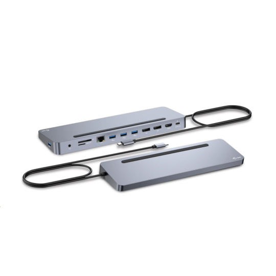 - Ergonomický design s hliníkovým krytem, dokovací stanice má integrovaný 60 cm kabel USB-C, takže je vhodná pro použití se všemi notebooky & tablety s displeji do 15" včetně.