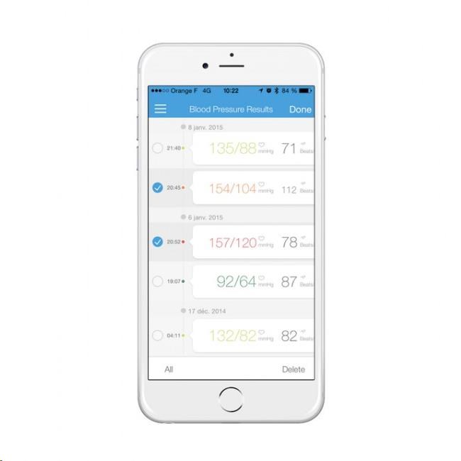 iHealth Track ale můžete bezdrátově a během vteřiny sesynchronizovat přes Bluetooth 4.0 s aplikací iHealth MyVitals ve svém chytrém telefonu a potažmo cloudu výrobce. Aplikace například záznamenává neomezenou historii a umožňuje výsledky sdílet s rodinou či lékařem.