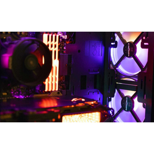Connect the included addressable cable to the motherboard’s addressable header. The CROWN AC120’s radiant lighting effect can be beautifully and easily demonstrated with a compatible motherboard software.