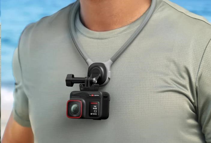 Pohodlný držák na krk pro kamery Insta360 GO 3S, GO 3, GO 2, X4, X3, ONE X2, Ace Pro 2 a ONE RS (4K i Twin edice) umožňuje natáčení z pohledu první osoby bez použití rukou. Má 360° otočnou základnu, rychlý uzamykací mechanismus a měkký, prodyšný silikon pro celodenní pohodlí.