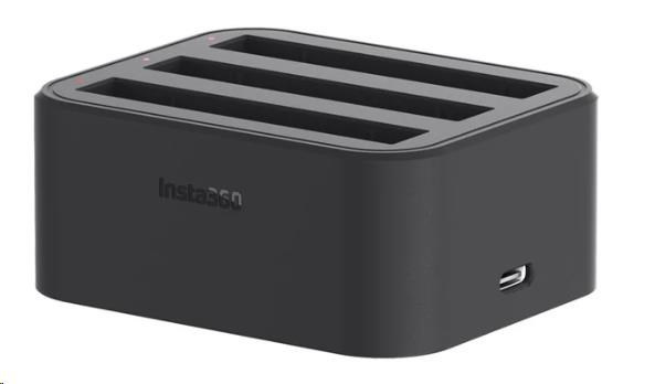 Nabíječ pro inteligentní akumulátory Insta360 ONE X2. Nabíječem lze nabíjet tři akumulátory současně.....