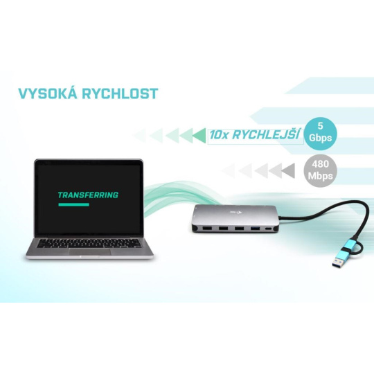 • Dokovací stanice podporuje až 100W napájení připojeného notebooku nebo tabletu