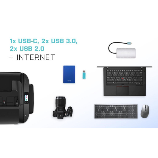 • 2x USB 3.0, 2x USB 2.0 a 1x USB-C port vám umožní snadné připojení vašich USB zařízení a periferií.