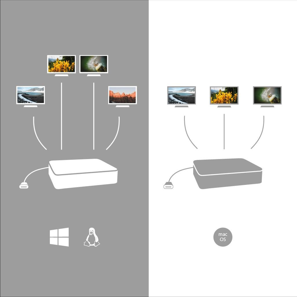Profesionální dokovací stanice USB-C, která podporuje výstup až na čtyři externí monitory. Tato dokovací stanice je vybavena hybridním zpracováním obrazu: je postavena na technologiích DisplayLink a USB-C video přenosu, což jí umožňuje zpracování obrazu až na zmíněných čtyřech zobrazovacích zařízeních.