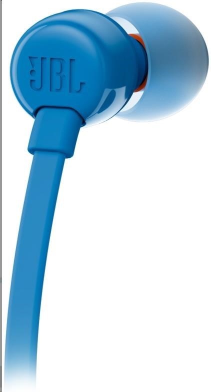JBL T110 Black špuntová sluchátka, 3,5 mm jack, mikrofon, modrá