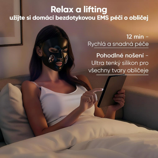 Maska je vyrobena z hypoalergenního silikonového materiálu v potravinářské kvalitě, který je maximálně šetrný i k té nejcitlivější pokožce. Díky tomu je zcela vhodná pro citlivou pleť, nezpůsobuje podráždění a umožňuje dlouhodobé, komfortní používání. Technologie EMS je bezpečná, neinvazivní a klinicky ověřená, takže si můžete dopřát účinné liftingové ošetření s plným pocitem jistoty a pohodlí.