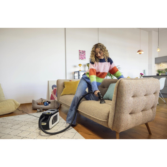 Hloubkové čištění až na vlákna a kompaktní design: čistič SE 3 Compact Home N1 s rozprašovačem je výkonné, energeticky úsporné a bezezbytkové řešení pro čištění textilních povrchů. Díky kompaktnímu designu se s přístrojem nejen snadno manipuluje, ale lze jej také uložit, aby se ušetřilo místo, což zajišťuje, že je rychle připraven k důkladnému a pohodlnému čištění do hloubky vláken i v případě nepředvídaného znečištění. Nečistoty z čalouněného nábytku, běhounů a malých koberců odstraní rychle a účinně..