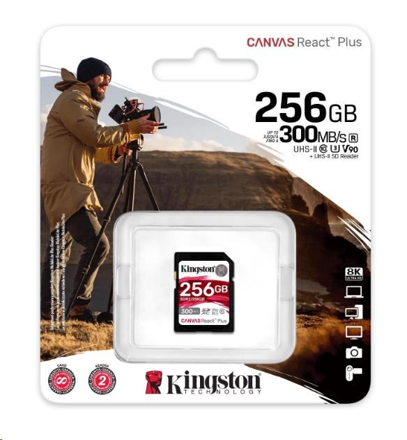 Kingston SDXC karta 256GB Canvas React Plus SDXC UHS-II 300R/260W U3 V90 for Full HD/4K/8K