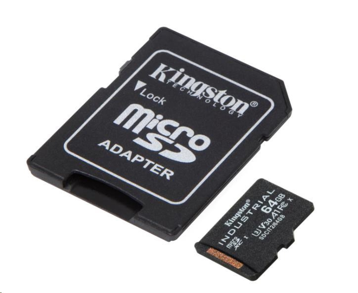 Kingston MicroSDXC karta 64GB microSDXC Industrial C10 A1 pSLC Card + SD Adapter