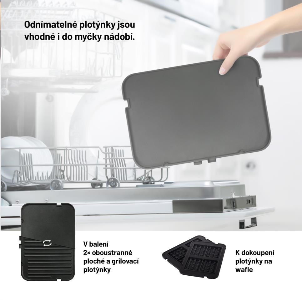Grilovací plotýnky jsou odnímatelné a vhodné do myčky nádobí.