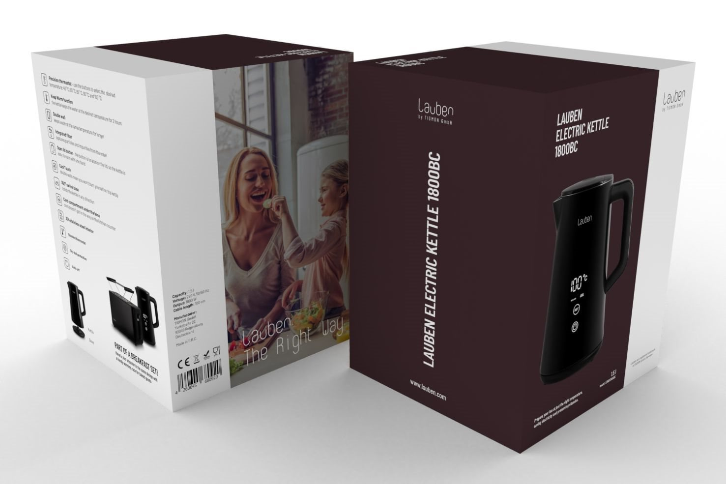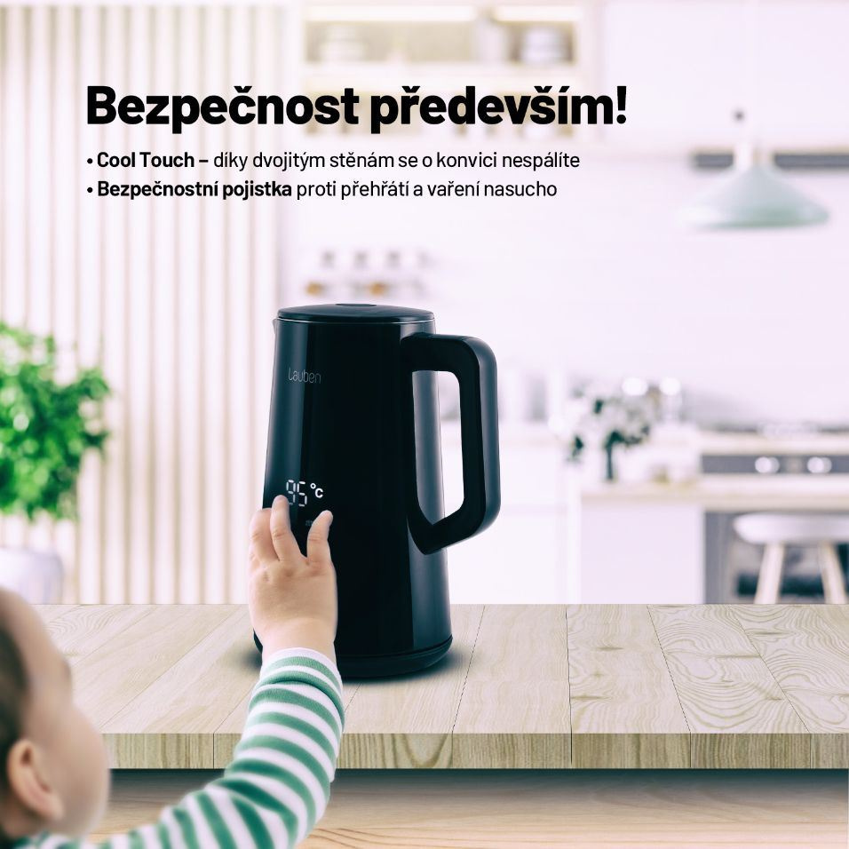 Nepostradatelnou součástí kuchyní se stala rychlovarná konvice. I ta ale může být víc než jen užitečný domácí spotřebič. Lauben Electric Kettle 1800BC v dokonalém černém designu s velkým digitálním displejem je velmi praktická a zároveň působí jako stylový designový doplněk. Vodu v ní ohřejete přesně na požadovanou teplotu a díky přesnému termostatu a funkce Keep Warm ji udrží na stejné teplotě až po dobu 2 hodin. Ani pak jí však dvojité stěny nedovolí rychle zchladnout. Údržba konvice je snazší než kdy dřív, integrovaný filtr totiž zachytí mnohé nečistoty. Jako vždy myslíme i na bezpečnost, proto technologie Cool Touch zabraňuje popálení se o konvici a bezpečnostní pojistka přístroj ochrání proti přehřátí a vaření bez vody. Samozřejmostí je základna otočná o 360° s prostorem pro ukrytí kabelu.