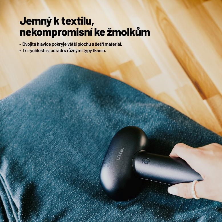 Zapomeňte na zdlouhavé kroužení po jednom rukávu. Dvojitá hlavice odžmolkovače zvládne větší plochu najednou, a to bez kompromisů v šetrnosti. Ideální řešení pro velké kusy oblečení i domácí textil. Tři nastavení rychlosti umožní upravit výkon přesně podle typu látky. Od jemných halenek až po silné svetry – materiál zůstane bez poškození, bez tahání a s perfektním výsledkem.