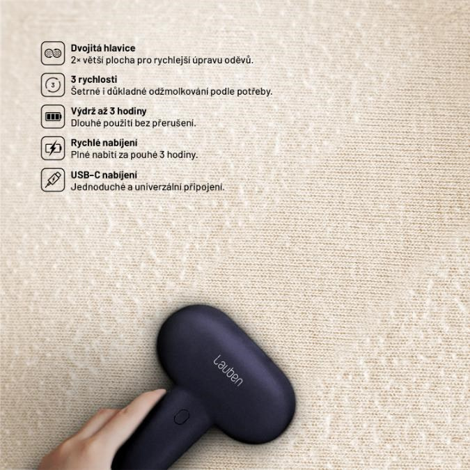 Někdy stačí málo, aby oblíbený svetr vypadal jako nový. Lauben Lint Remover Dual 4AT je kompaktní a výkonný pomocník, který si poradí s nevzhlednými žmolky během okamžiku – doma i na cestách. Dvojitá hlavice pokryje dvojnásobnou plochu, a tak zvládnete ošetřit svetry, kabáty nebo přehozy rychleji než kdy dřív. Přístroj nabízí tři rychlosti, díky nimž se přizpůsobí různým typům materiálů, aniž by je poškodil. S výdrží až 3 hodiny na jedno nabití a moderním USB-C nabíjením je připraven kdykoliv zasáhnout.