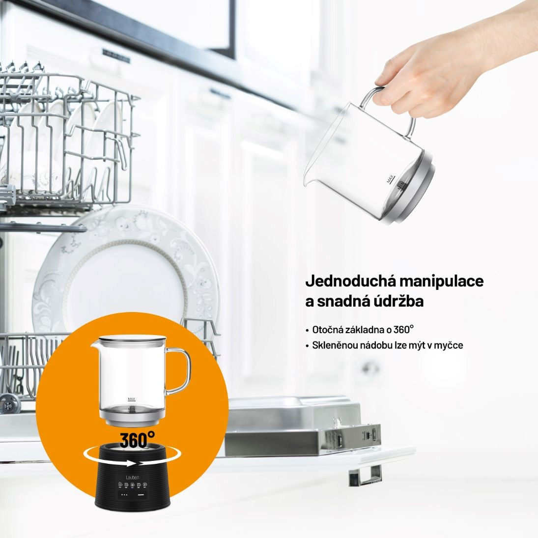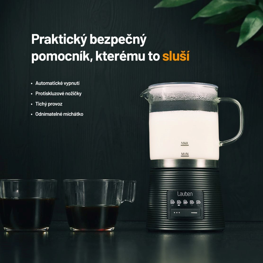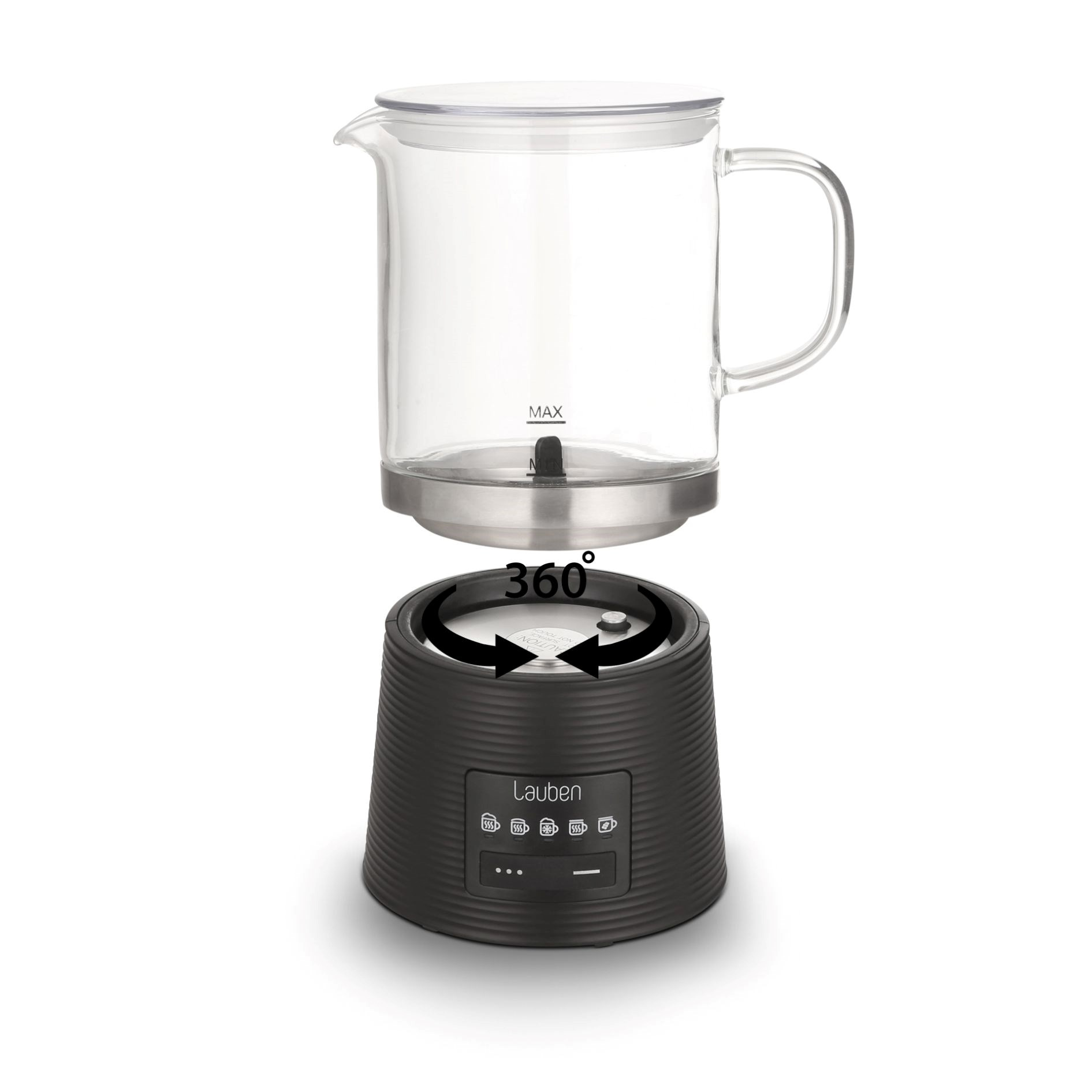 Milovníci nápojů s dokonale našlehaným mlékem si nyní díky napěňovači Lauben Glass Milk Frother 600BG vychutnají i v domácím prostředí či v práci mléčnou pěnu jako od baristy. Skleněná nádoba umožňuje sledovat proces přípravy, je zdraví nezávadná a snadná na údržbu, stačí omýt nebo vložit do myčky. Údržbu usnadňuje i odnímatelné míchátko. Pro lepší manipulaci má základna schopnost otáčet se o 360°. Pomocí variace módů přístroj zvládá teplé i studené napěňování či míchání a speciální mód vykouzlí horkou čokoládu. Svými baristickými schopnostmi nevyrušíte spící rodinu ani kolegy v kanceláři, neboť provoz napěňovače je velmi tichý. Tento praktický designový kousek ohřeje 250 ml a napění 150 ml mléka. Protiskluzové nožičky drží přístroj na místě, k bezpečnosti přispívá i funkce automatického vypnutí.