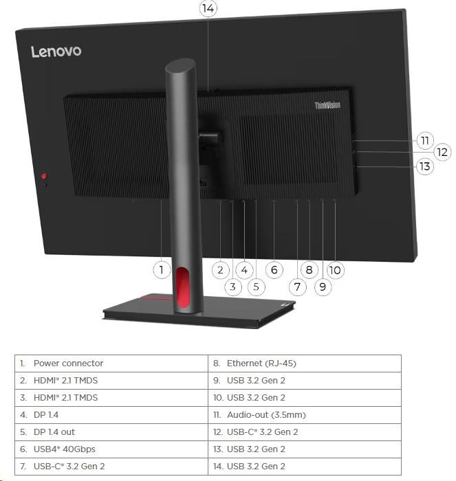 | Speciální funkce | Lenovo® ThinkColour (Lenovo Accessories and Display Manager) Support Lenovo ThinkColour supports Windows® 10 & 11, Mac OS, and Windows On Arm (functions vary across systems). Lenovo Accessories and Display Manager is formerly Lenovo Display Control Center. Factory Calibration: Avg. Delta E<1.5 Picture In Picture (PIP) / Picture By Picture (PBP) Support HDR10 Compliance DisplayHDR™ 1000 HLG KVM Switch Smart Sensor (Ambient Light Sensor, Human Detection Sensor) Smart Power The Smart Power function intelligently detects overall power consumption and dynamically manages the power delivery to each device |