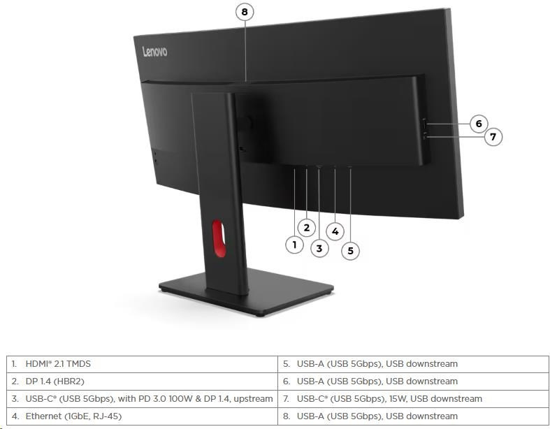 LENOVO LCD T34WD-40 - 34",VA,matný,21:9,3440x1440,120Hz,4ms,300cd,3000:1,HDMI,DP,USB-C,PD100W,RJ45,USBhub,VESA