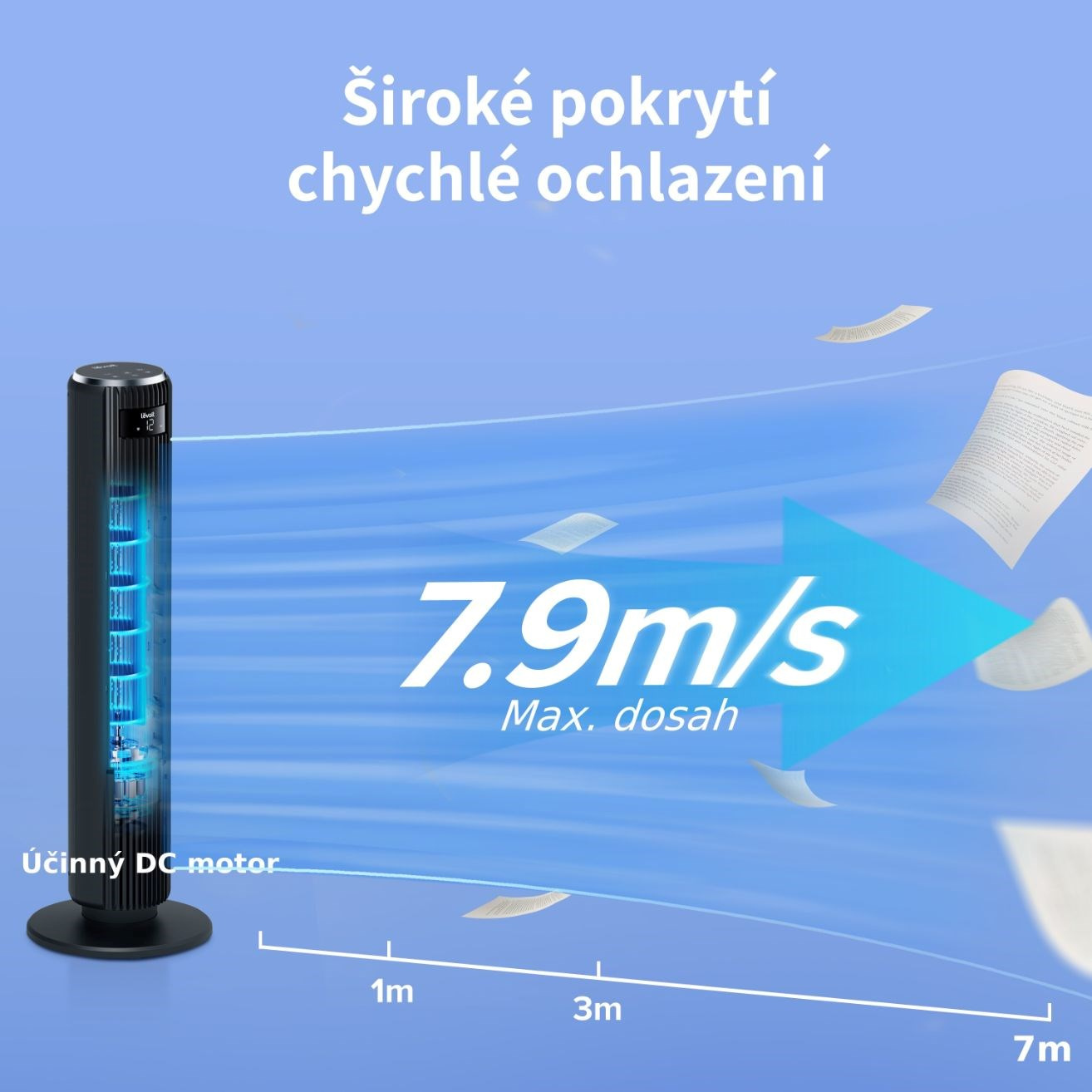 • Rychlost proudění vzduchu až 7,9 m/s – dosah až 7 metrů