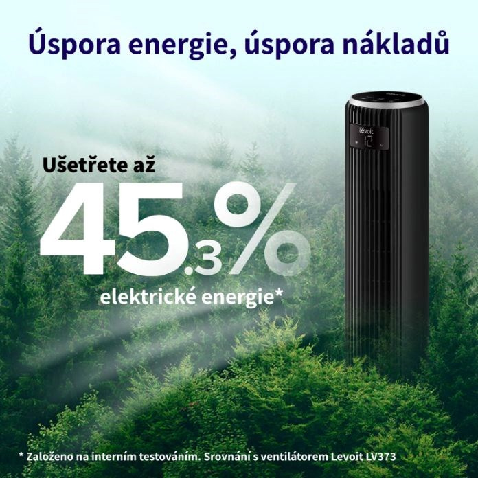 Ventilátor Levoit je navržen, aby podával nejlepší výkon 24 hodin denně. Proto bylo nutné omezit jeho spotřebu energie, a to se díky použití energeticky šetrného, bezkartáčového motoru povedlo. S příkonem 26 W při maximální rychlosti můžete být klidní a poděkuje vám i příroda.